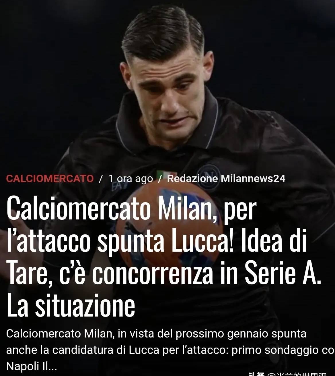 米兰转会动态:卢卡成锋线备选